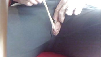 顽皮的黑发戴着手套取悦绅士吸气和抽搐